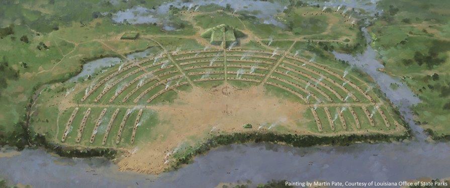 The site of one of the oldest and most archaeologically significant North American civilizations is Poverty Point in West Carroll Parish, near Monroe, where a village among earthen mounds existed 3,500 years ago. It became a UNESCO World Heritage Site in 2014.